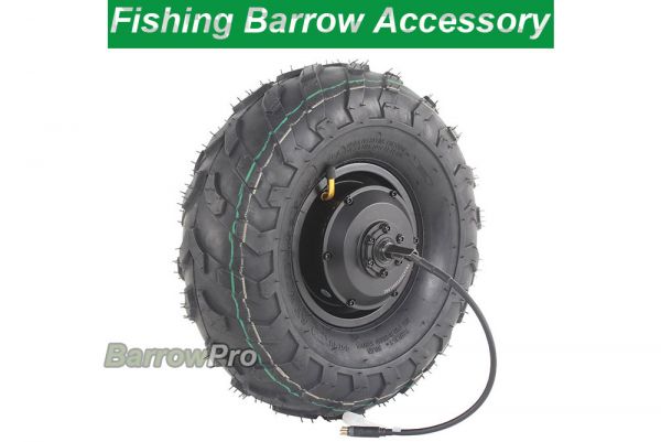 At the core of the Power Wheel is the 24V 350W brushless in-hub motor. This motor delivers exceptional torque and power, allowing you to effortlessly navigate even the most challenging terrains. Its brushless design ensures smooth and efficient operation, while its durable construction guarantees long-lasting performance. The internal components are crafted from high-performance stainless steel, providing superior strength and resistance to corrosion.  The tire is another critical component of the Power Wheel. The 145/70-6’’ off-road tire features an aggressive tread pattern that provides exceptional grip on a variety of surfaces. Whether you're traversing muddy banks, rocky trails, or sandy beaches, this tire will keep you moving forward with confidence. Its robust construction ensures it can withstand the rigors of outdoor use.  Water resistance is paramount for any outdoor equipment, and the Fishing Barrow Power Wheel doesn't disappoint. It features numerous ingenious designs to protect it from moisture, ensuring it remains operational even in wet conditions. This level of water resistance gives you peace of mind knowing that your investment is protected.  The Fishing Barrow Power Wheel is more than just the sum of its parts. It's a carefully designed system that works seamlessly together to provide exceptional performance. Whether you're a seasoned angler or just starting out, this product will help you transport your gear with ease and efficiency, allowing you to focus on what really matters: catching fish.